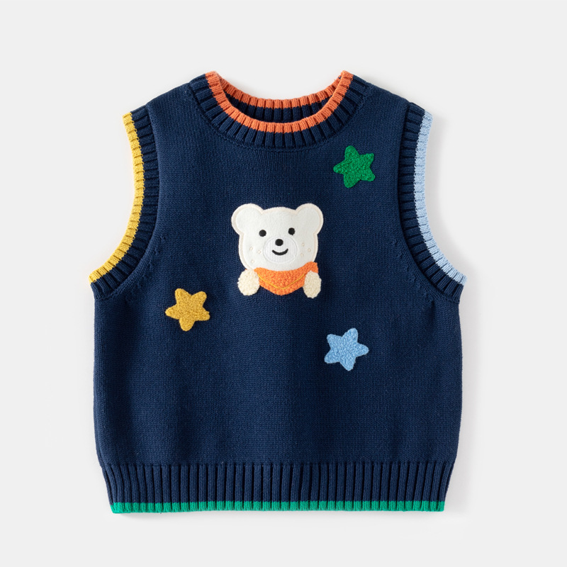 Children’s Cartoon Bear Embroidered Wool Knit Vest