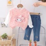 Premium quality winter cardigan set with Korean Melody, a full sleeved shirt and jeans.